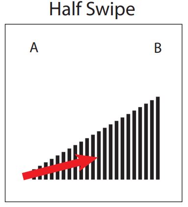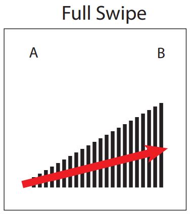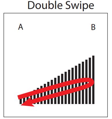 Four interaction classes for gesture-level signal separability evaluation. The first three — full swipe, half swipe, and double swipe — have similar but distinct trajectories, chosen to test whether overlapping motion primitives remain distinguishable at the signal level. The fourth, random contact, captures accidental touch during everyday use: participants simulated incidental contact without a prescribed trajectory. Its inclusion reflects a deliberate stance: separating intentional interaction from accidental perturbation is a human-centered inference problem, not merely a signal-processing problem. From McDonald et al. (CHI 2022). Figures by Richard Vallett, Center for Functional Fabrics, Drexel University.