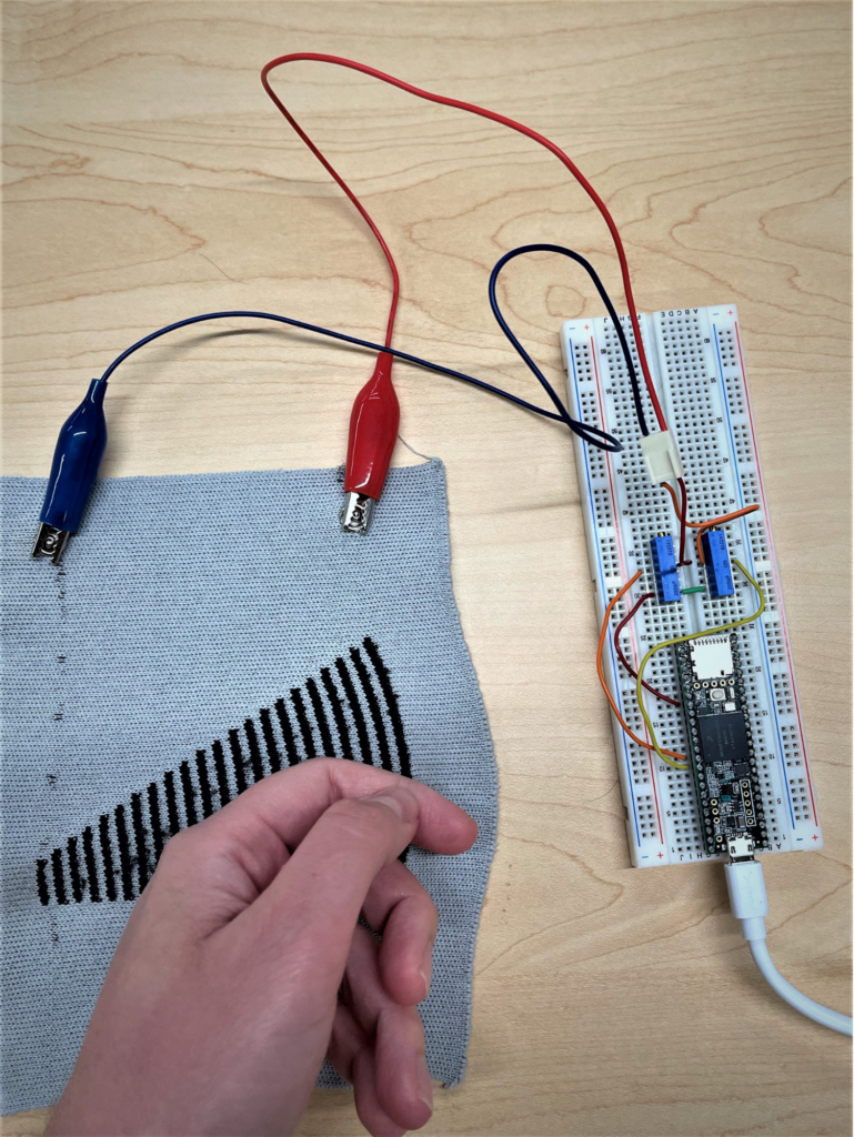 My knitted-sensor research explores how computational modeling can enable digitally knitted textile substrates to function as a general interactive sensing platform: soft, low-profile sensor designs that recover human intent through touch and gesture and support downstream applications built on top of that inference.